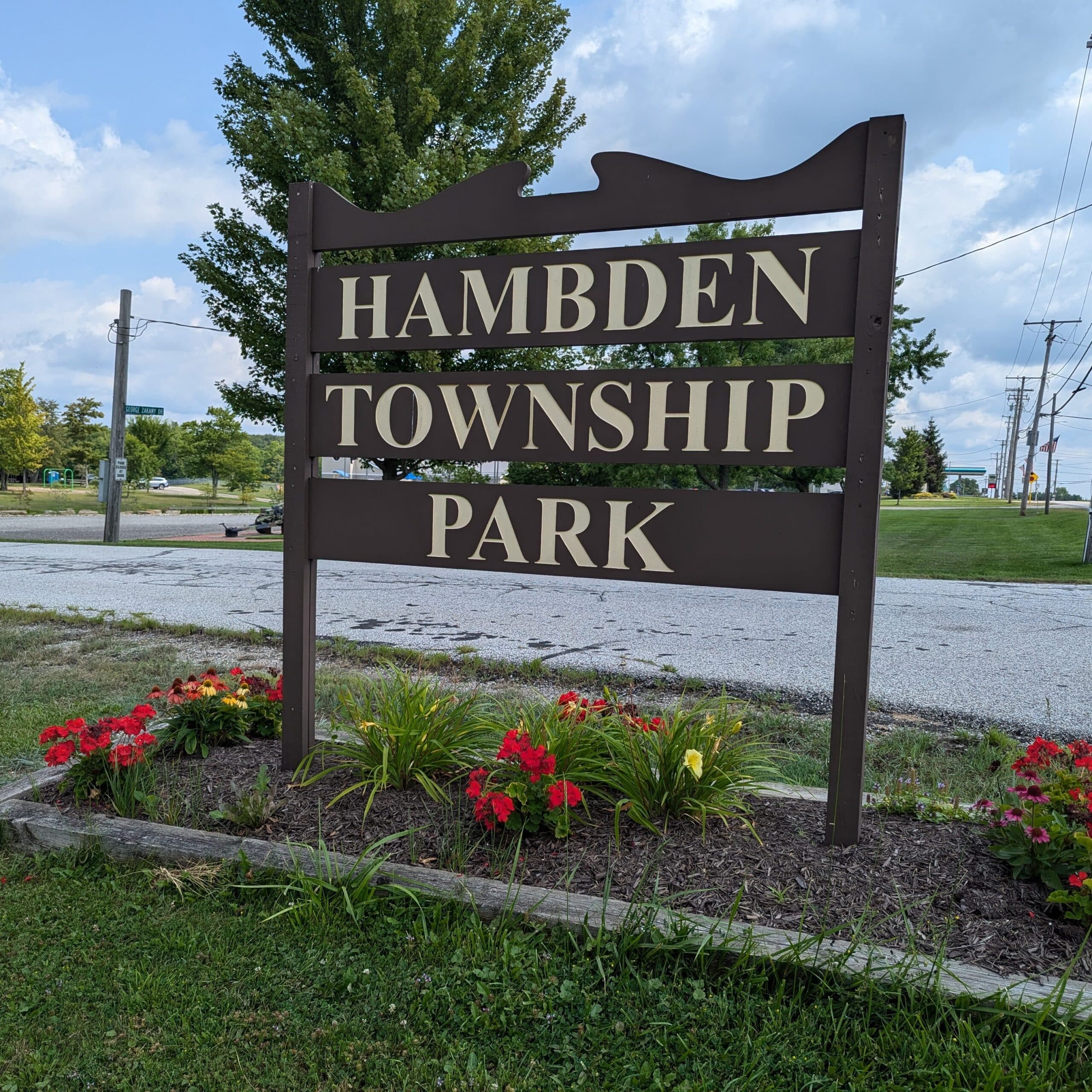 The Hambden Township Park consists of 29.64 acres of land in Geauga County. The park is located on the north side of GAR Highway – across the street from the Hambden Town Hall and Hambden Elementary School. On that land are four baseball fields; four picnic pavilions; three play areas with swings, sand diggers, a tarantula climber, a basketball court; 1.63 miles of walking track; and the Veteran’s Memorial.