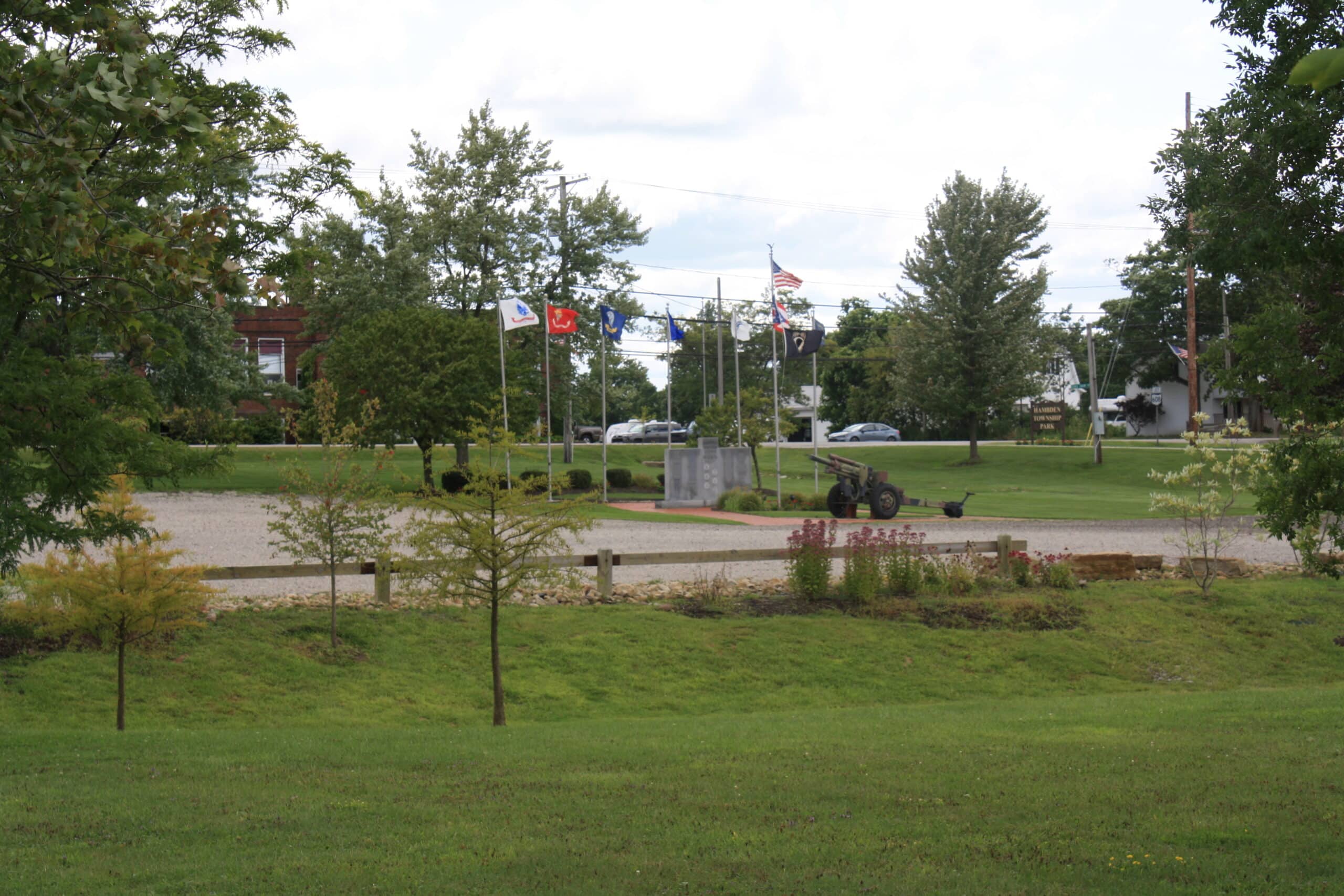 The Hambden Township Park consists of 29.64 acres of land in Geauga County. The park is located on the north side of GAR Highway – across the street from the Hambden Town Hall and Hambden Elementary School. On that land are four baseball fields; four picnic pavilions; three play areas with swings, sand diggers, wood jungle gyms, a tarantula climber, a basketball court; 1.63 miles of walking track; and the Veteran’s Memorial.